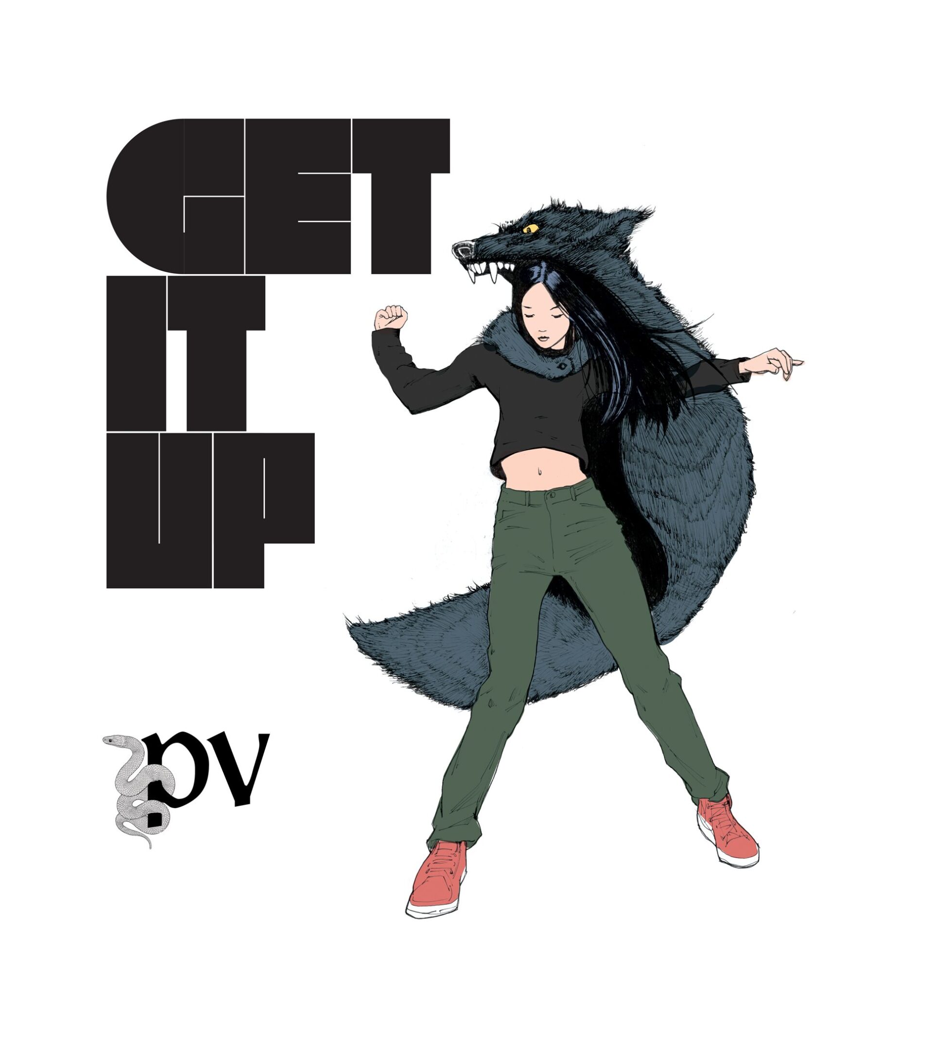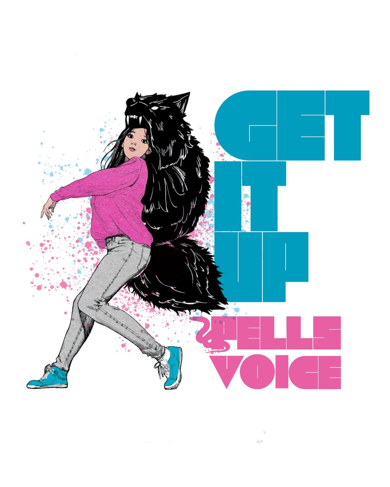 Alternate pose and design concept for Pells Voice “Get It Up” single artwork. Digital type and color of original ink on Bristol drawing.